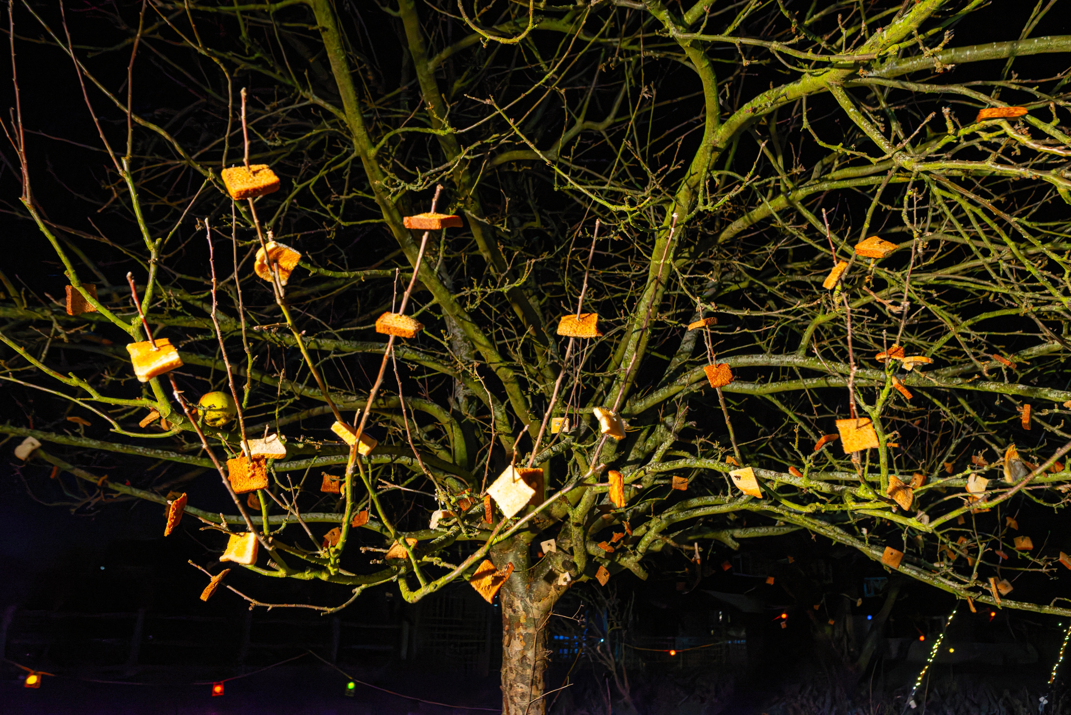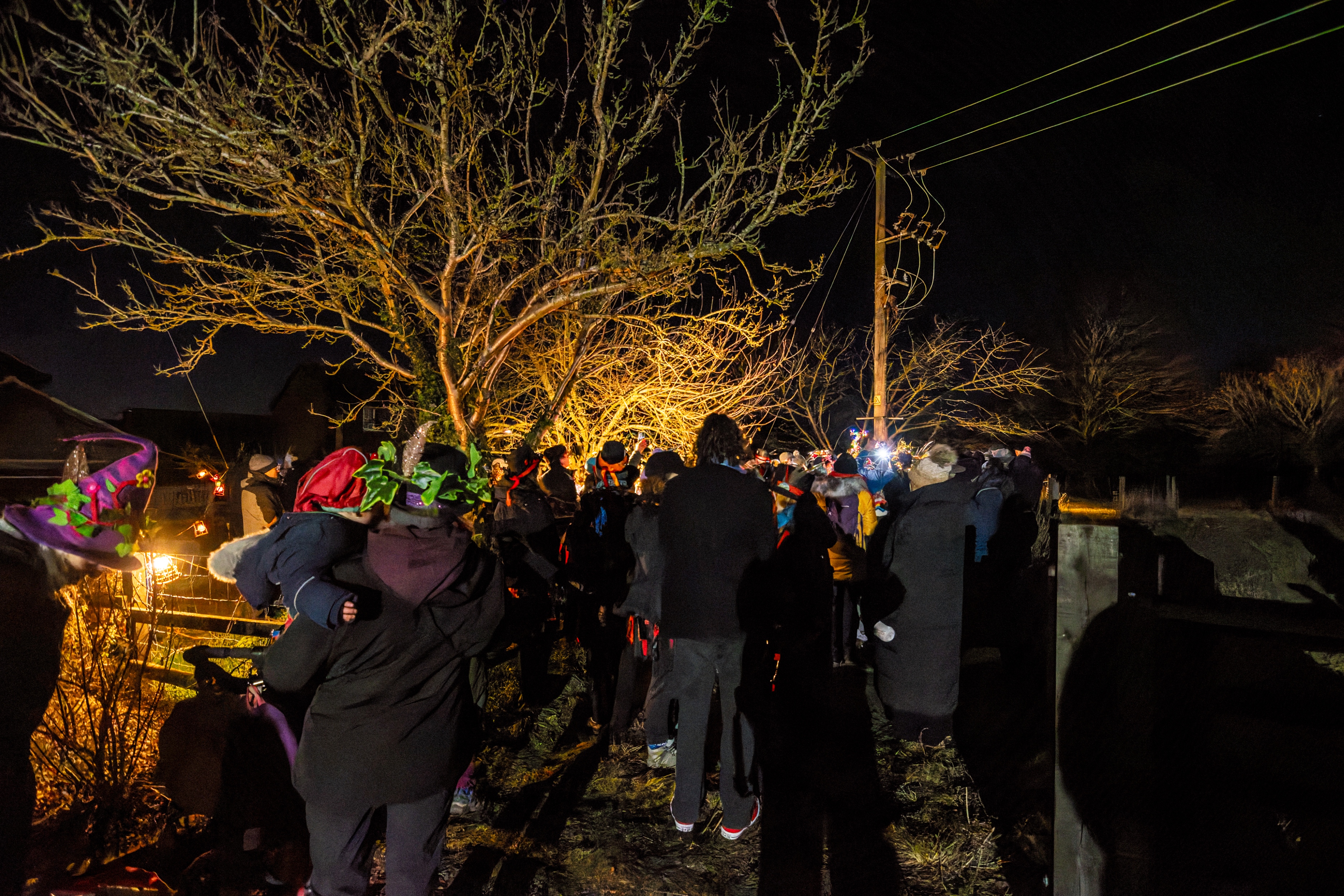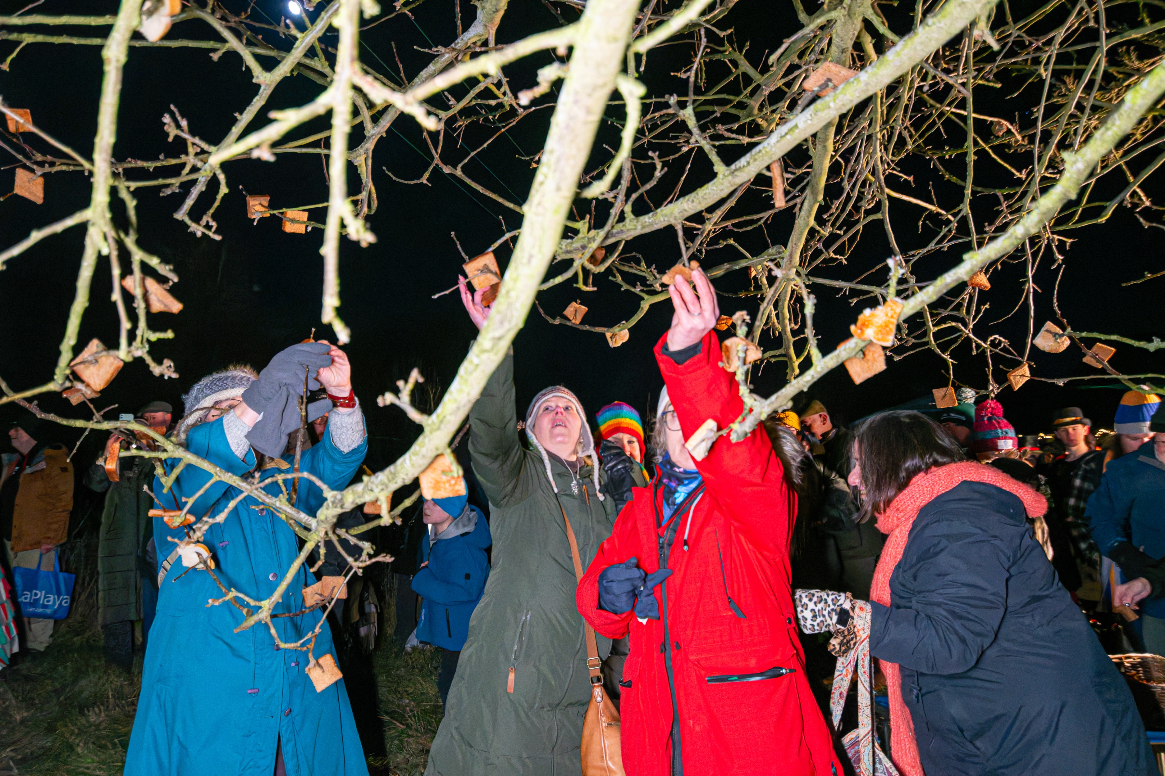 Wrap up warm, bring a torch, a saucepan lid and a wooden spoon. Once we have hung toast soaked in cider in the trees in the orchard and sung a couple of wassail songs we toast the apple trees then make as much noise as possible to encourage the trees to bear as many apples as possible next year.