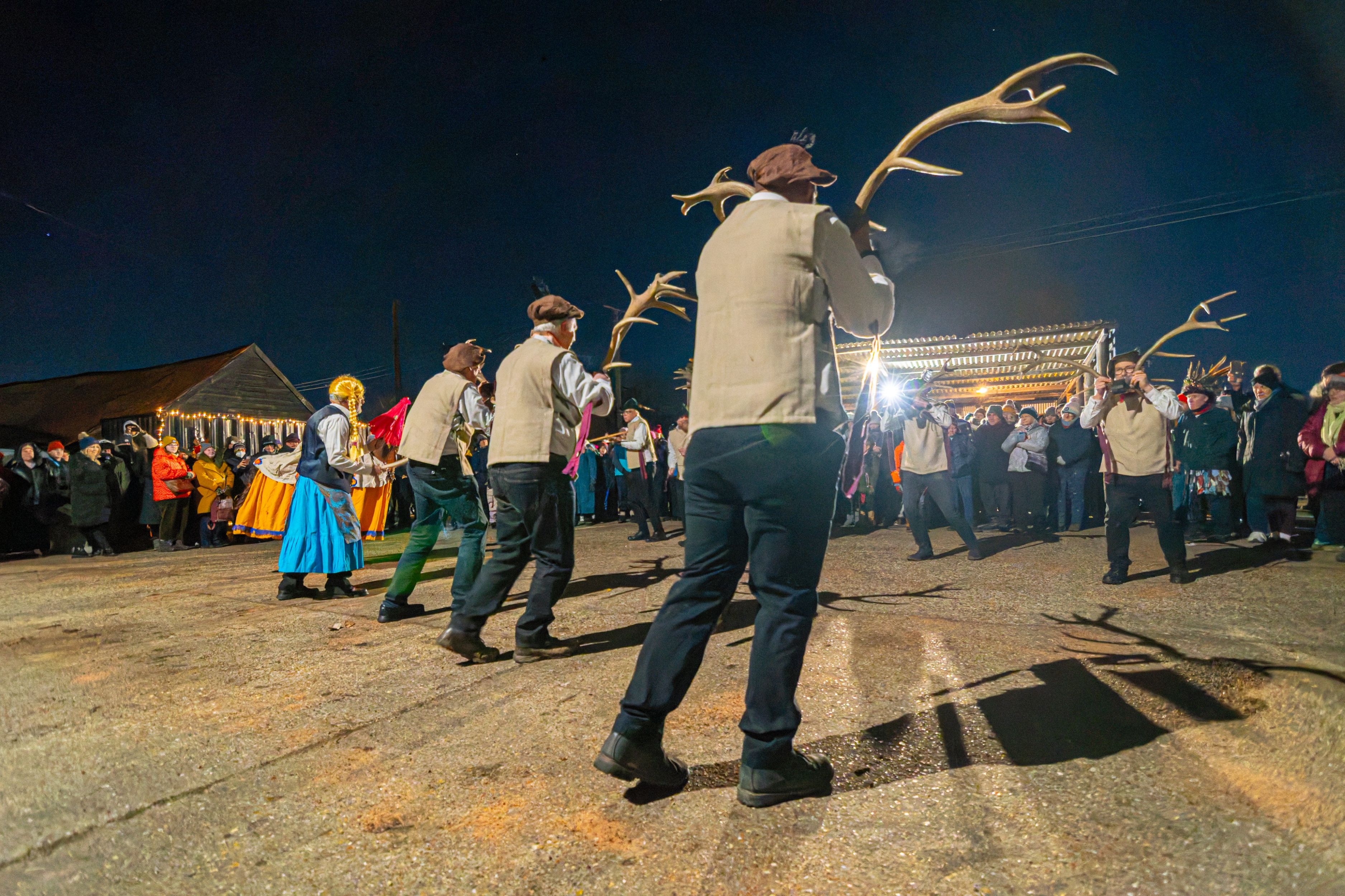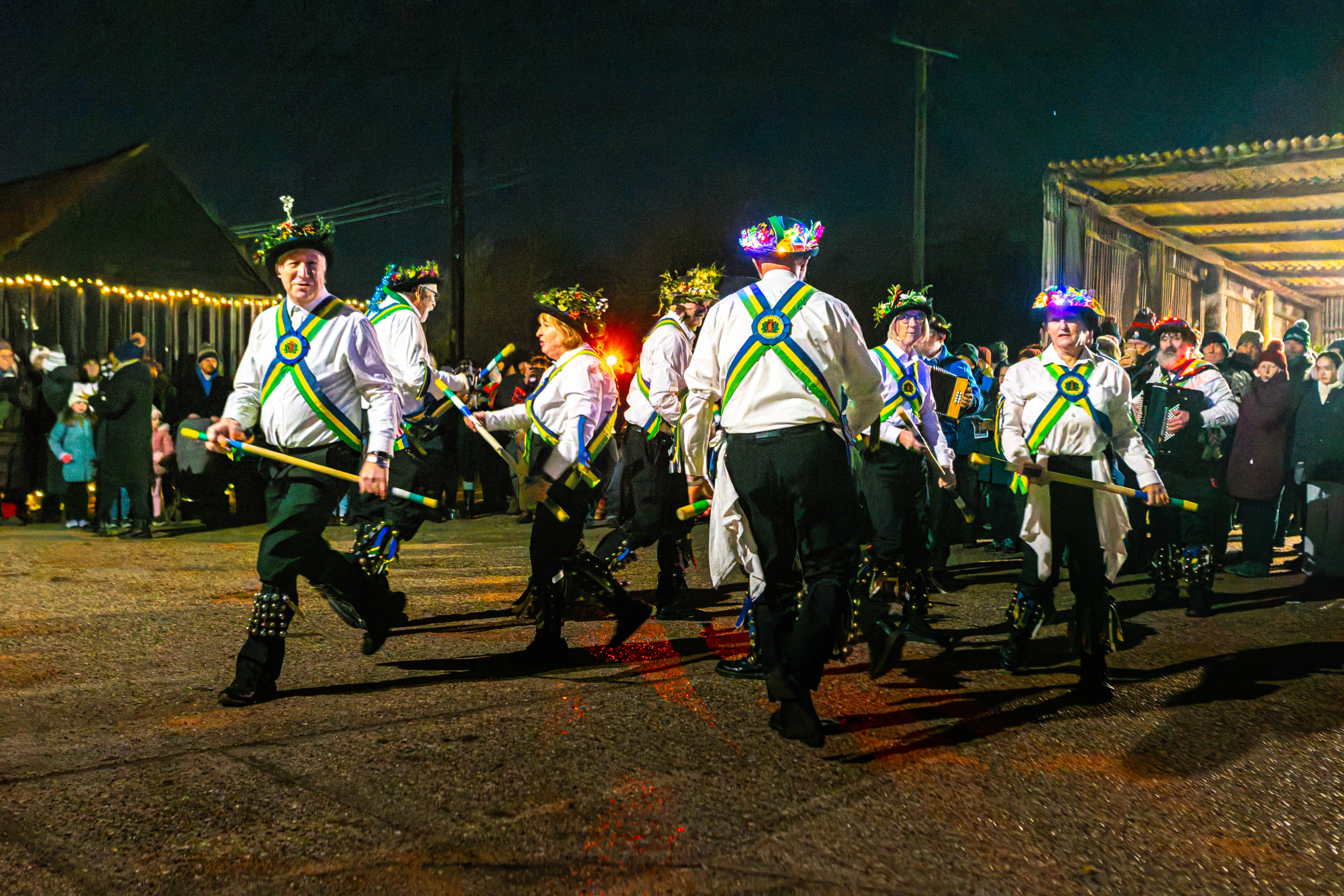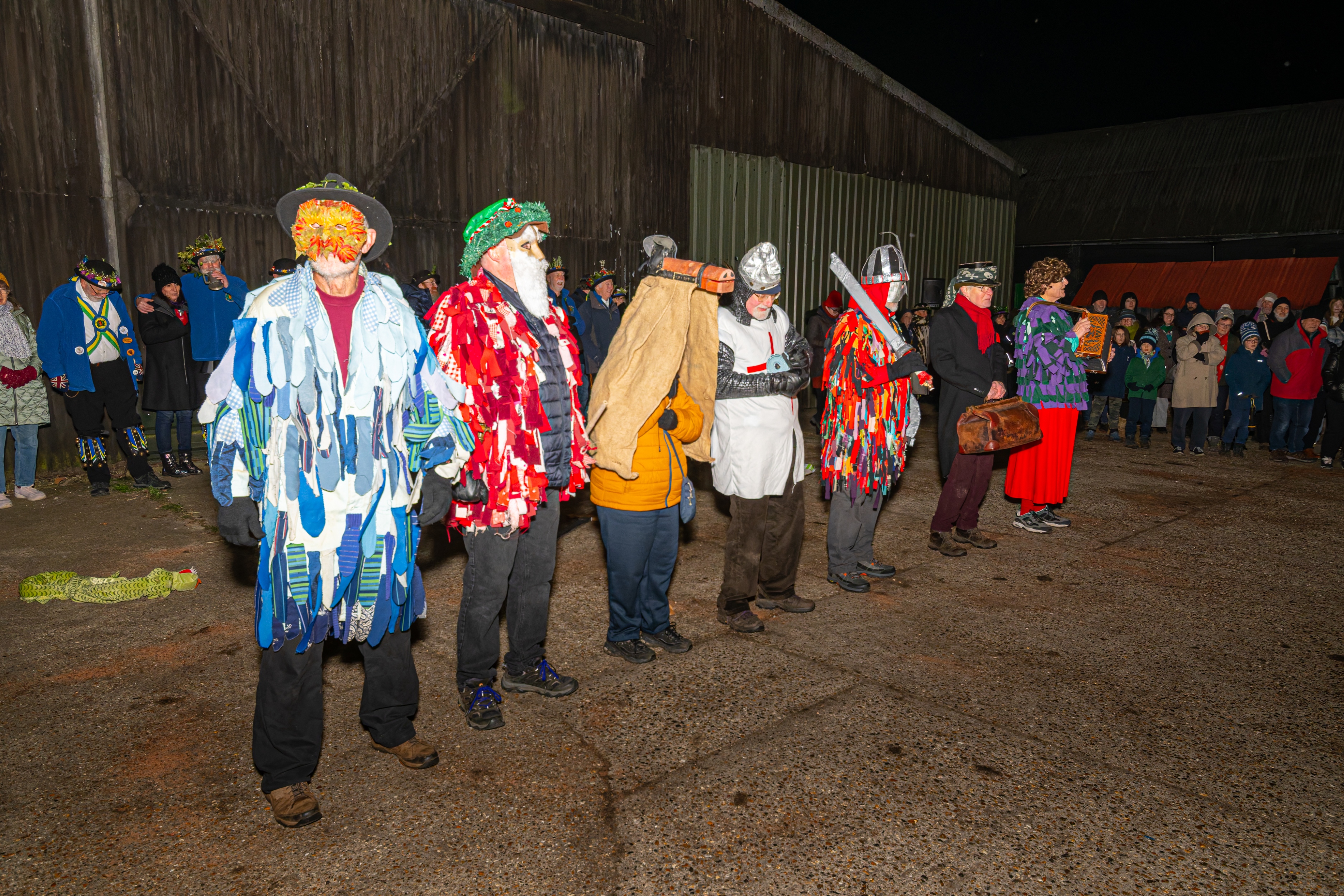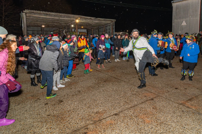 Our wassails are very much community affairs with a number of village groups involved with the event. We have soup and hot dogs from Dunton Community Garden, mulled cider, Dancing from Letchworth Morris, Bedford Morris Men and Hicca Hoodlums, And a mummers play from the Barfront Guizers.